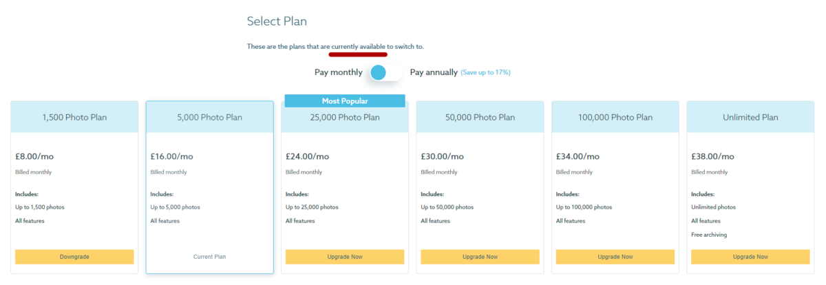 Pricing Structure Complexity: ShootProof is very much about customization and flexibility, and this is also evident when it comes to their pricing tiers. There are multiple tiers available, very much dependent upon the number of photos likely to be uploaded, and the combination of features required. This does allow for scalability, which is certainly a good thing for many businesses perhaps starting out and looking to scale in the longer term. But we do feel that this adds a significant layer of complexity, and there is a risk that photographers might find themselves ending up paying for more features than they actually need. Either that, or having to unexpectedly upgrade plans as the business grows, impacting costs. This is definitely in contrast with our own plug-in, picu, which has been designed to simplify pricing and make it much more predictable for photographers with a WordPress website, with no impact on the number of images or number of features that they are likely to use.